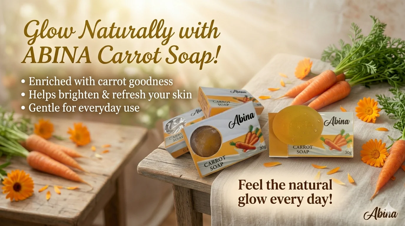 🌟 Give your skin the natural care it deserves!πŸ‘‰ Buy ABINA Carrot Soap today and enjoy fresh, glowing skin every day!