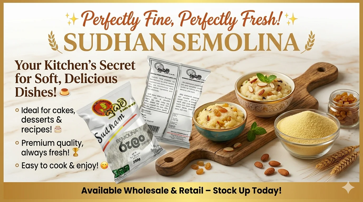 Upgrade your cooking with Sudhan Semolina, a high-quality, natural semolina ideal for baking, cooking, and making traditional dishes. Carefully processed to preserve its texture and flavor, this semolina ensures perfect results every time – whether it’s for cakes, puddings, desserts, or savory dishes.