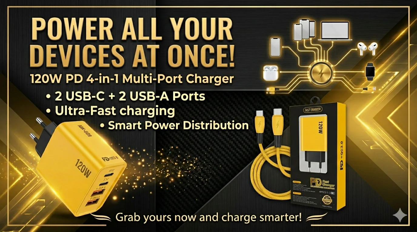 Upgrade your workstation or travel kit with the ultimate power solution. Our 120W PD Multi-Port USB Type-C Charger is engineered for high-performance users who need to charge laptops, smartphones, and tablets simultaneously without compromising on speed or safety.
